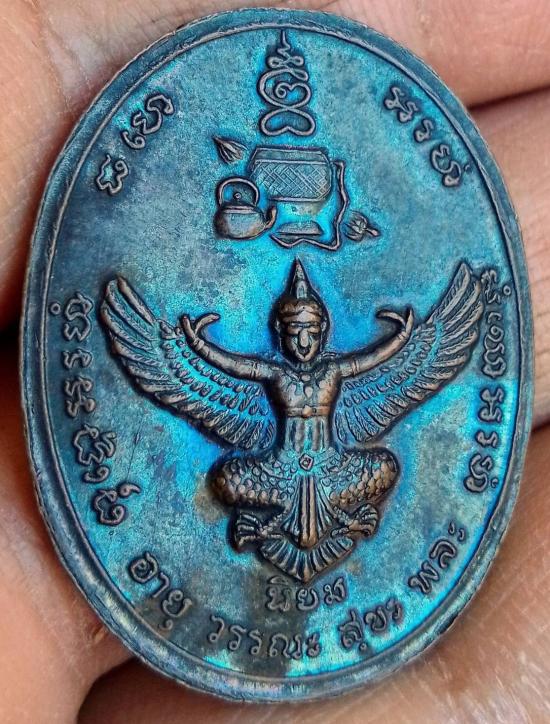 เหรียญไร้ห่วง หลวงปู่แหวน วัดดอยแม่ปั๋ง จังหวัดเชียงใหม่ หลัง พญาครุฑ รุ่นนิยม สร้างปี 2521 อายุ วรรณะ สุขะ พละ |