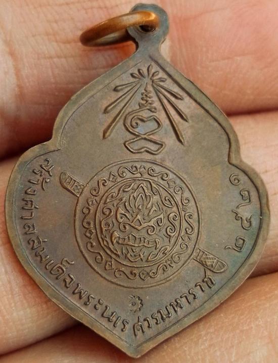 เหรียญหน้าวัวเนื้อทองแเดง รุ่น สร้างศาลสมเด็จพระนเรศวรมหาราช หลวงปู่แหวน สุจิณฺโณ พศ.2521