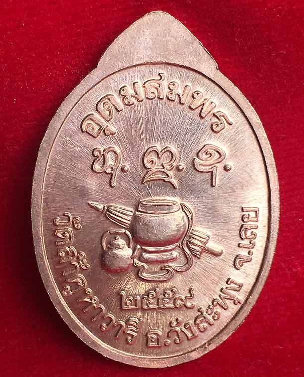 "วัดใจ" หมายเลข 777 เหรียญอุดมสมพร (หันข้างรุ่นแรก) หลวงพ่อสำลี สุทธจิตฺโต วัดถ้ำคูหาวารี จ.เลย เนื้อสัตตะโลหะ สภาพสวยพร้อมกล่องเดิม พ.ศ.2559