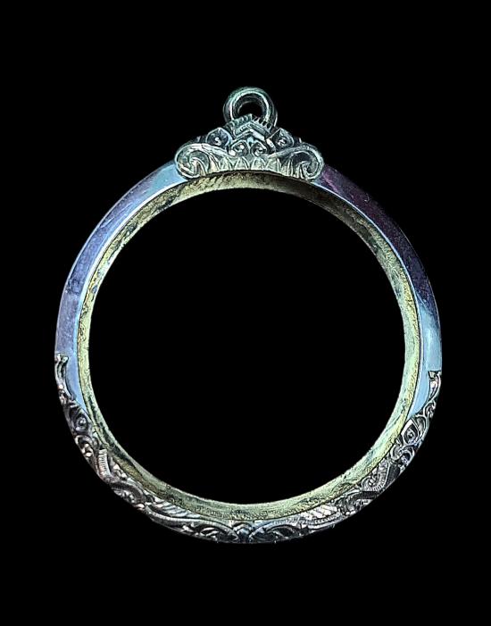 ชื่อพระเครื่อง ตลับเงินแท้ทรงกลมใหญ่งานแกะมือ ชุบสามกษัตริย์ สภาพดี