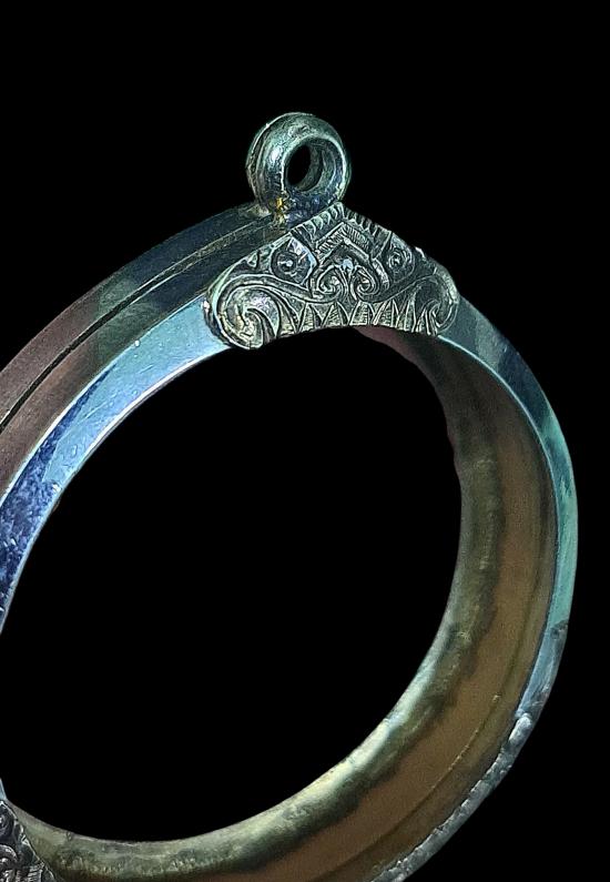 รายละเอียด ขนาดรอบวงใน 4.2ซม. ด้านข้างหนาๆ น้ำหนัก 18.78 กรัม สภาพดี