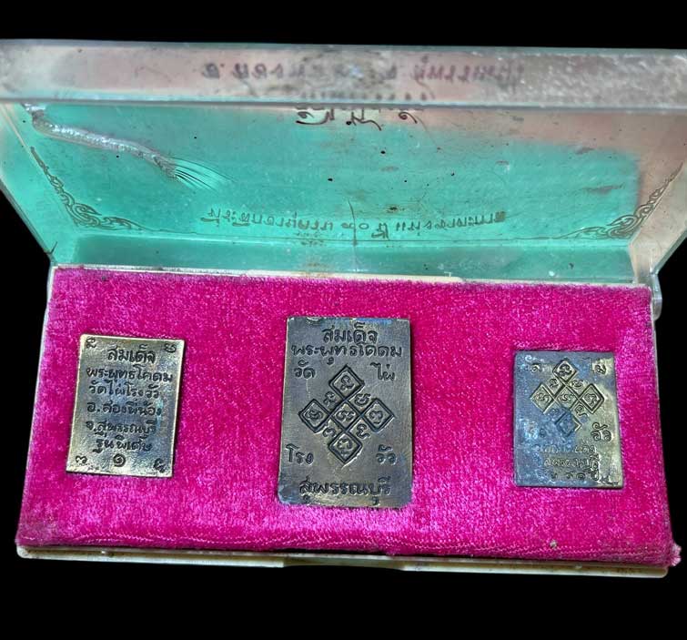 พระชุด3องค์ ที่ระลึกอายุ 90 ปี หลวงพ่อขอม วัดไผ่โรงวัว จ.สุพรรณบุรี พร้อมกล่องเดิม