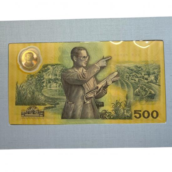 ธนบัตรที่ระลึก ร 9 ฉลองสิริราชสมบัติครบ 50 ปี แบงค์ 500 บาท ปกผ้าไหม ครบชุด |