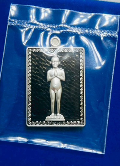 วัดใจ เหรียญพิมพ์แสตมป์ รุ่นปาฎิหาริย์ไอ้ไข่ วัดเสมาเมือง จ.นครศรีธรรมราช เนื้อเงินลงยาสีดำ เลข120 |