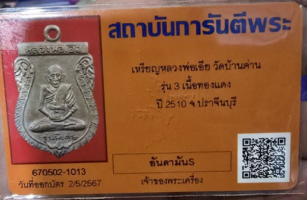 เหรียญหลวงปู่เอีย วัดบ้านด่าน รุ่น 3 เนื้อทองแดง ปี 2510 จังหวัดปราจีนบุรี พร้อมบัตรรับประกันจากทางเว็บ พิจารณาให้ชอบก่อนเคาะนะครับจะได้ไม่เสียเวลาทั้งสองฝ่าย เคาะเดียวแดงครับ