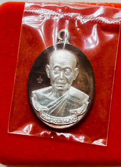 วัดใจ เหรียญห่วงเชื่อม รุ่นแรกเมตตา หลวงปู่หุน วัดบางผึ้ง จ.ฉะเชิ่งเทรา เนื้อนวะโลหะหน้ากากเงิน -ห่วงเงิน เลข99 เลขสวย |