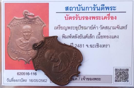 เคาะเดียวแดง+++เหรียญหลวงพ่อคำ วัดสนามจันทร์ รุ่นเเรก ปี2481 บล็อคยันต์เล็ก เหรียญยอดนิยม เนื้อทองเเดง ผิวไฟสวย พร้อมบัตรการันตีพระแท้ |