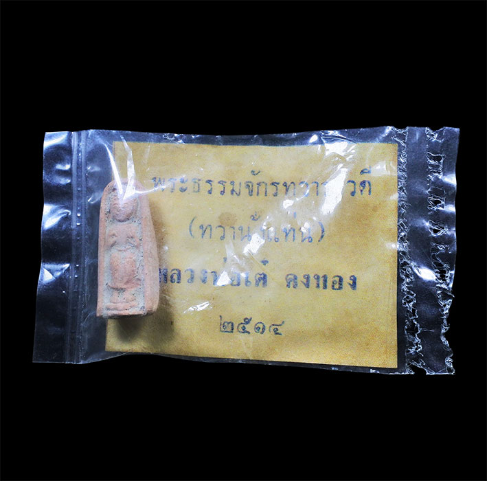 พระธรรมจักรทวารวดี (ทวานั่งแท่น) หลวงพ่อเต๋ คงทอง วัดสามง่าม ปี14 พิมพ์เล็ก ซองเดิม