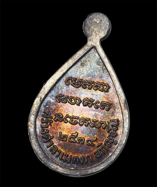 เหรียญหยดน้ำพิมพ์เล็ก(เนื้อเงิน)หลวงปู่สาม อภิญจโน วัดป่าไตรวิเวก จ.สุรินทร์ ปี 2534 มีกล่องเดิม