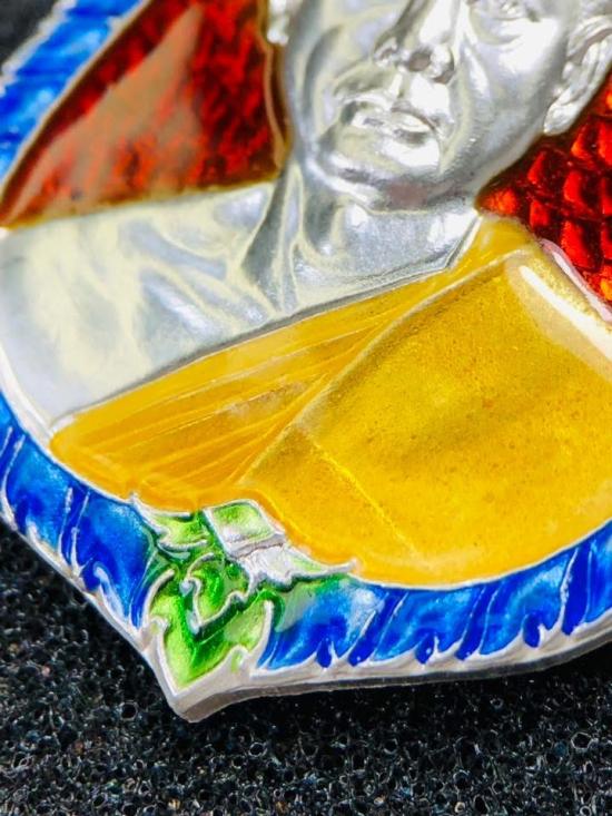 ออกวัด 2,500 เหรียญเสมาหน้าแซยิด หูเชื่อมโบราณ เจริญพร ลาภมาไม่ขาด หลวงพ่ออิฏฐ์ วัดจุฬามณี เนื้อเงินลงยาแดง ลงยาจีวร