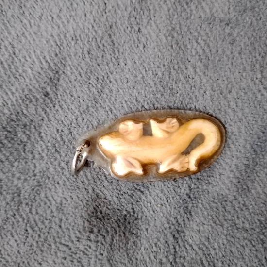 จิ้งจก งาแกะ จารอักขระ เลี่ยมเก่า ไม่ทราบที่ |