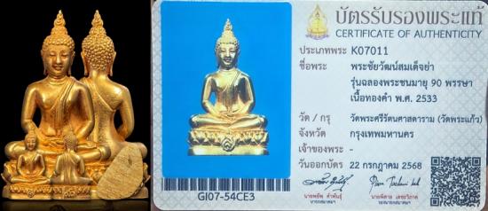 พระชัยสมเด็จย่า 90 พรรษา เนื้อทองคำ 7.7 กรัม+ฤกษ์ดีเด่นทางการเงิน และอำนาจวาสนาสูงส่ง + บัตรสมาคม