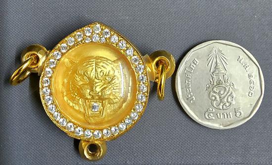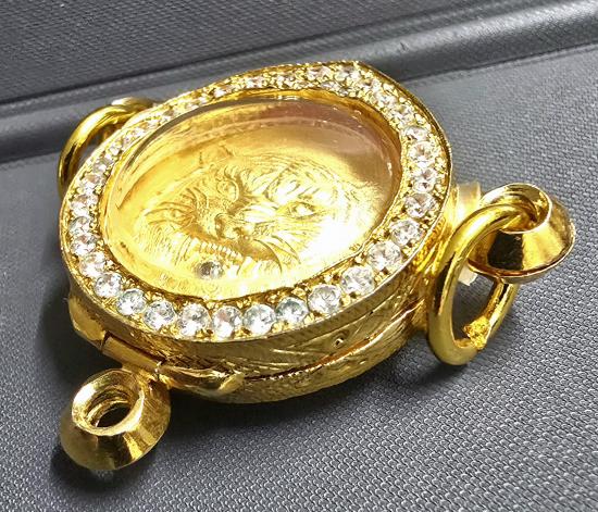 เหรียญกลมหน้าเสือ รุ่น"เจริญพร" หลวงปู่บุญมา โชติธัมโม วัดเขาแก้วทอง ปราจีนบุรี เนื้อนวะโลหะชุบทองคำ ฝังเพชรปาก ใส่ตลับอิตาลีชุบทองฝังเพชร 3 ห่วง หมายเลข ๕...พร้อมห้อยสวยๆครับ เคาะแรกแดง (ไม่มีกล่อง