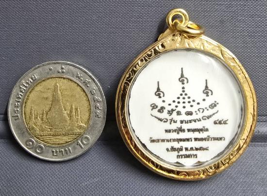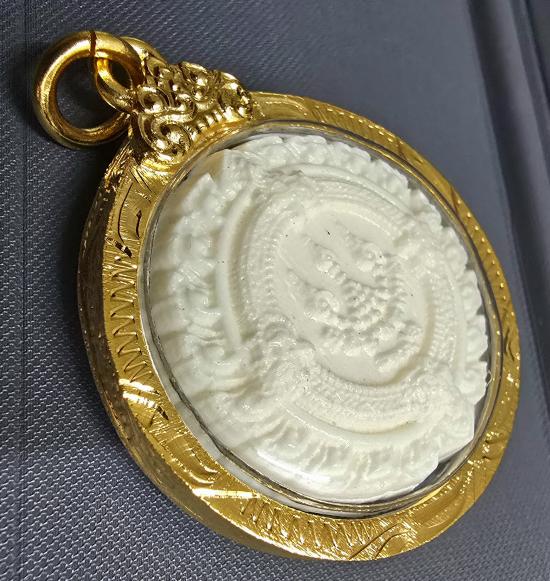 เหรียญเนื้อคชสารแกะพญานาค เลี่ยมกรอบชุบทอง