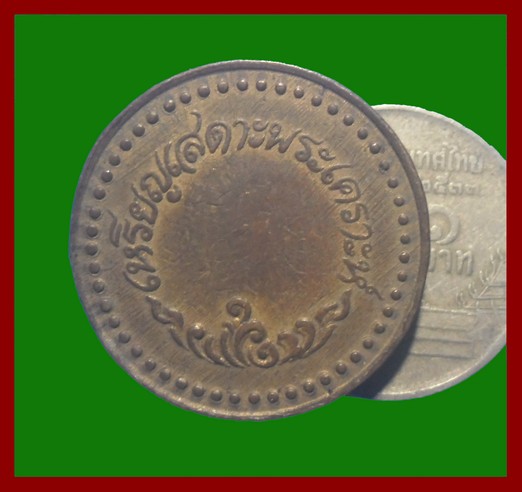ขนาดประมาณเหรียญบาท เป็นรูปธรรมจักร
