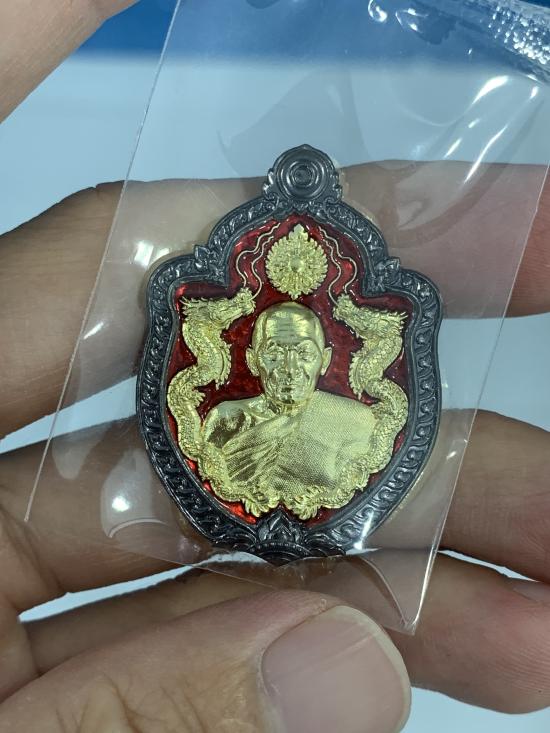 ราคาพิเศษ หลวงปู่มหาศิลา หลวงปู่ศิลา รุ่นอายุวัฒนมงคล พิมมังกรคู่ เนื้อฝาบาตรลงยาสีแดงขอบนวะ เบอร์ 615 พิเศษหลังโรยผงตะไบมวลสาร