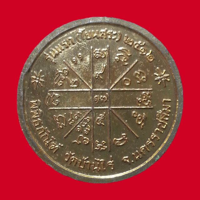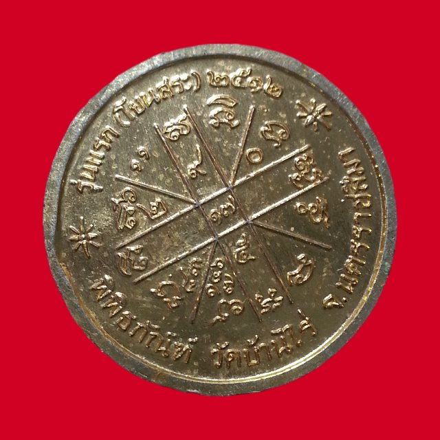 เหรียญกลมรุ่นแรกหลวงพ่อคูณ ปริสุทโธ รุ่นแรก (โยนสระ) หมายเลข 810 ปี 2512 พิพิธภัณฑ์ วัดบ้านไร่ จ.นครราชสีมา เนื้อกะไหล่ทอง ครับ |