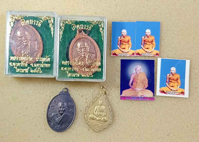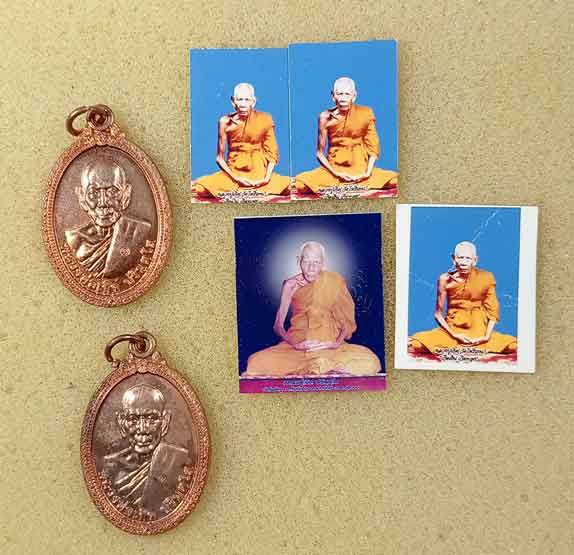 พระจังหวัดนครนายก 4 เหรียญ + รูปถ่าย 4 บาน