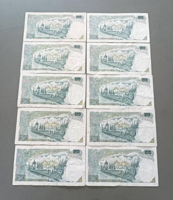 ธนบัตร 20 บาท พระที่นั่งเรืออนันตนาคราช แบบที่ 11 จำนวน 10 ฉบับ