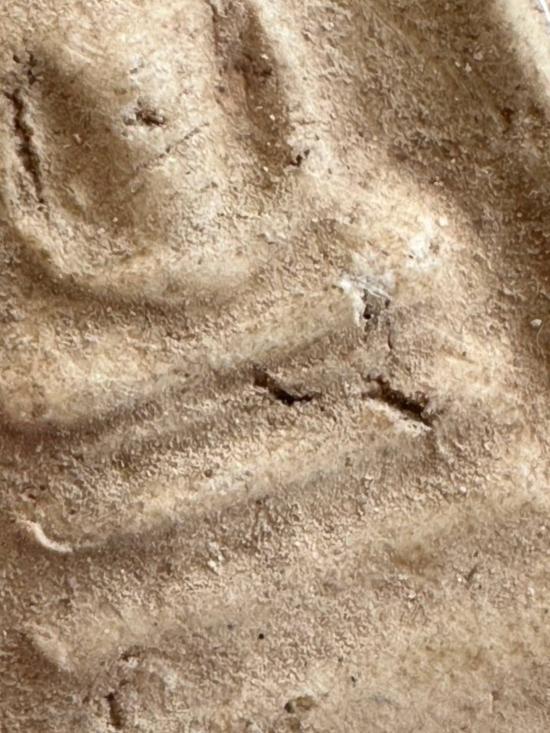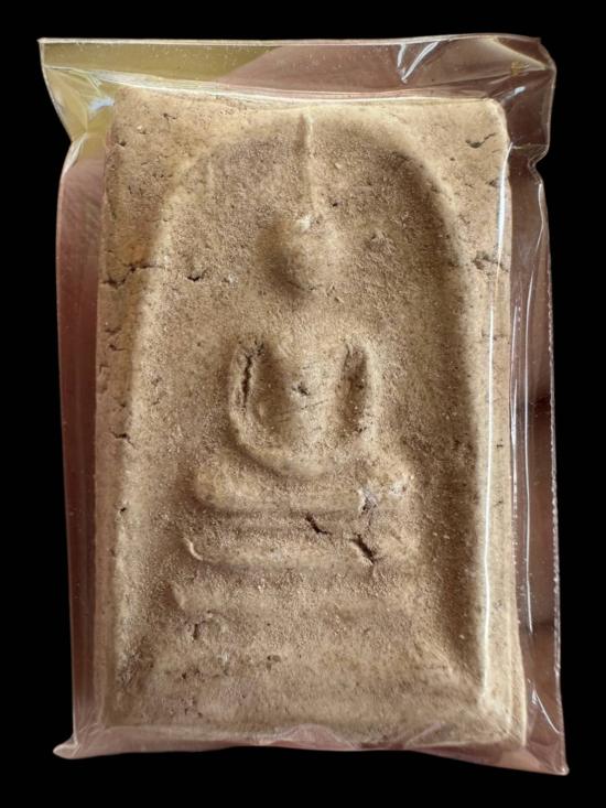 องค์นี้พิมพ์ทรงสี่เหลี่ยมซุ้มครอบแก้ว เนื้อผงละเอียดแห้งจัดทั่วผิว มีรอยปริแตกลายงาตามธรรมชาติของพระเก่า พิมพ์องค์พระนูนต่ำ ฐานบัวซ้อนชัดเท่าที่ผิวจะให้เห็น ด้านหน้ามีความฟุ้งของผงเก่ากระจายบาง ๆ ดูธรรมชาติ ส่วนด้านหลังเป็นผิวเรียบแห้ง มีมวลสารกระจายตัวแบบเนื้อผงยุคเก่า พื้นผิวโดยรวมเดิม ๆ ไม่แต่ง ไม่ล้าง ผิวแห้งสนิททั้งองค์ ลักษณะทางเนื้อออกแนวพระผงโบราณ แต่ไม่ทราบกรุ ไม่ทราบสำนักสร้าง ขอผู้รู้สายเนื้อผงช่วยพิจารณาเพิ่มเติม องค์จริงจับขึ้นมารู้สึกถึงความเก่าแบบเดิม ๆ ธรรมชาติแท้ทั้งองค์ เหมาะสำหรับนักสะสมสายผงเก่าที่ต้องการศึกษาพิมพ์และเนื้อครับผม