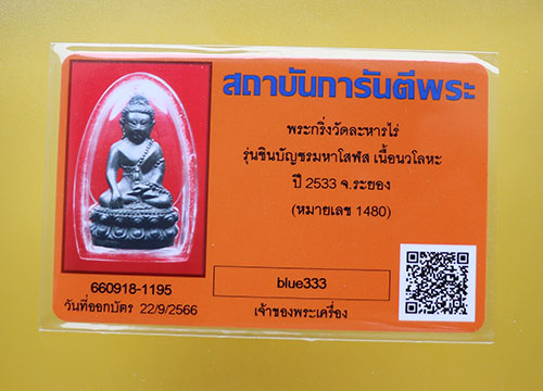 พระกริ่ง+พระชัยวัฒน์ชินบัญชรมหาโสฬส เนื้อนวโลหะ ชุดกรรมการ หมายเลข ๑๔๘o หลวงปู่ทิม วัดละหารไร่ พร้อมกล่องเดิม สวยๆ เดิมๆ ปี 2533
