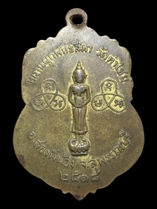 เหรียญเสมาหลวงพ่อหนุน วัดท่าไชย อ.สองพี่น้อง จ.สุพรรณบุรี ที่ระลึกในงานผูกพัทธสีมา ปี2518 เนื้อทองฝาบาตร