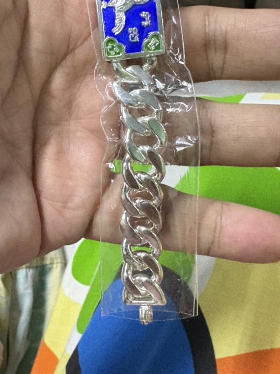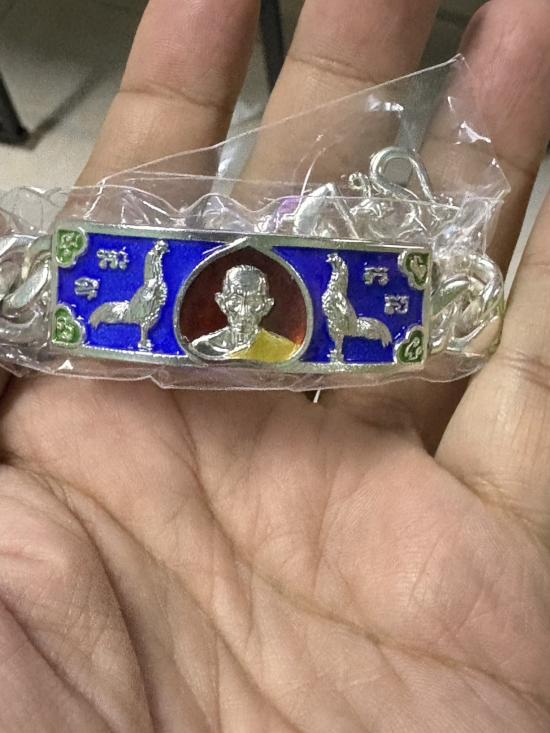 HOT!!! เลสเนื้อเงินลงยาสีน้ำเงิน เสาร์ 5 รวยพญาไก่ ปี 2560 ขนาด 4 บาท หลวงพ่อรวย วัดตะโก