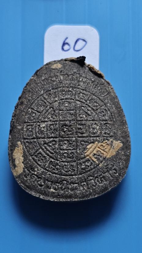พระปิดตายันต์ดวงเล็ก เนื้อ2 สี ด้านหน้าเกสรด้านหลังใบลาน ตะกรุดเงินครับ(60) |