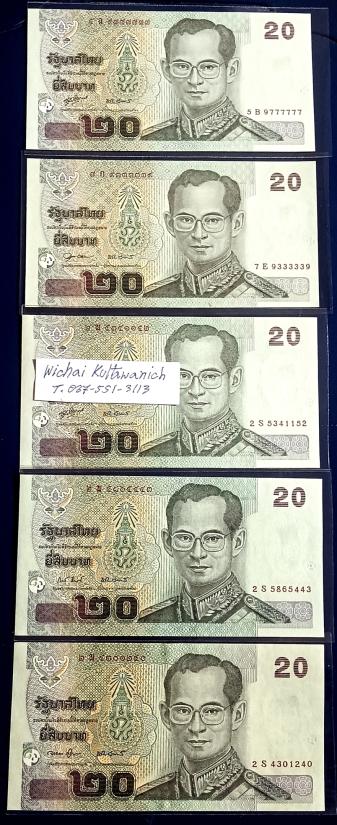 ธนบัตร 20 บาท ร.9 แบบ 15 ไม่ผ่านใช้ เลขสุดสวย 2 ใบ และหมวด หมดเสริม S 3 ใบ(มี1ใบผ่านใช้น้อย S 4301240) ราคาเบาหวิว |