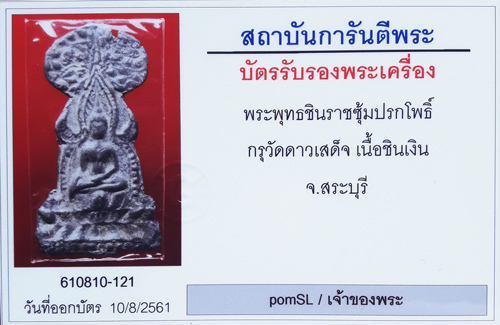 พระพุทธชินราชซุ้มปรกโพธิ์ เนื้อชินเงิน กรุวัดดาวเสด็จ สระบุรี มาพร้อมบัต G-pra ครับ