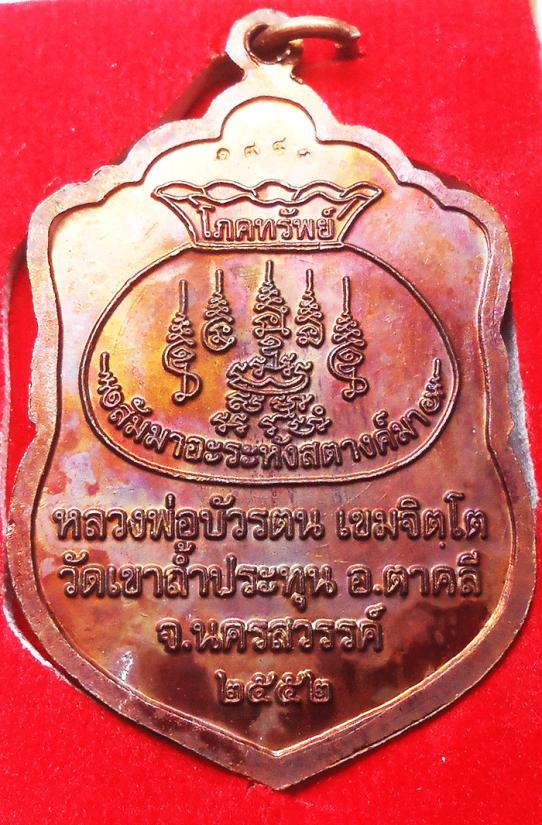 ปฏิเสธไม่ได้ว่านี่คือหนึ่งเหรียญนามดีที่มากประสบการณ์ของวันนี้ วัตถุมงคลที่เข้ากันกับจริตของคนรุ่นใหม่ ศิษย์สายตรงหลวงปู่สีและชาวตาคลีต่างทราบกันดี มาแรงจนเป็นที่กล่าวขานในวงการและวงกว้าง หลายๆท่านที่เคยปรามาสกลับหันมาแอบเก็บอย่างเงียบๆ เพราะได้ประจักษ์กับตัวกันทั่ว...ถ้วนหน้า ชัดเจนมากในเรื่องเมตตามหานิยมและ....โชคลาภ ไม่ผิดเพี้ยนตามชื่อเหรียญ...เป๊ะ! องค์นี้เนื้อทองแดง ตอกหมายเลข ตอกโค๊ต เหรียญออกแบบได้สวยแปลกตาน่ารัก เป็นรูปเสมา...ใบหน้ายิ้ม-อิ่มบุญ-เต็มองค์-หันหน้าตรง สะท้อนบุคลิกที่สว่างไสว-แจ่มใส-อารมณ์ดีของหลวงพ่อบัวสอนหรือบัวรตน เขมจิตฺโต เจ้าอาวาส วัดถ้ำประทุน ท่านเป็นวิปัสสนาจารย์-พระธุดงส์กรรมฐาน จาริกผ่านร้อนผ่านหนาวไปทั่วทุกตะเข็บชายแดน ทั้งเขตภาคเหนือและอีสาน หากใครได้มีโอกาสสนทนาธรรมกับท่าน จะพบว่าคำสอนของหลวงพ่อช่างเรียบง่ายแต่ลึกซึ้ง ไปถึงตาคลีวันนี้นมัสการหลวงปู่สี หลวงพ่อพรหม หลวงพ่อโอด แล้วอย่าลืมไปกราบท่านนะครับ รับรอง...มีโชคลาภ...ร่ำรวยทุกคน