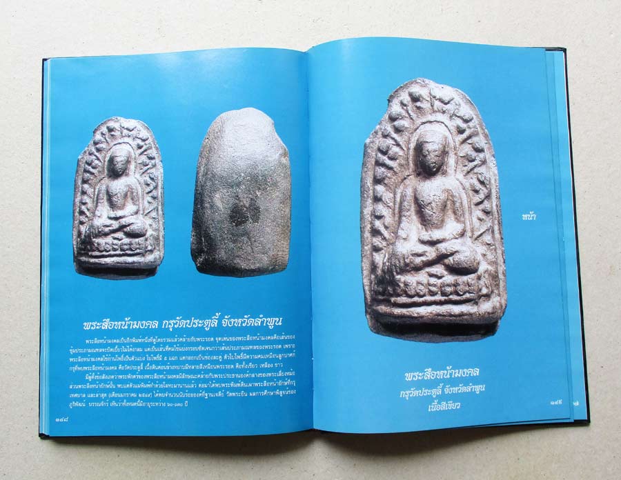 หนังสือพระพุทธรูป พระพิมพ์สกุลช่างหริภุญไชย รวบรวมภาพพระบูชายุคสมัยต่างๆ และ พระกรุสกุลลำพูน ปกแข็งขอบหนา ภาพพระแท้ สีสวย คมชัด 188 หน้า