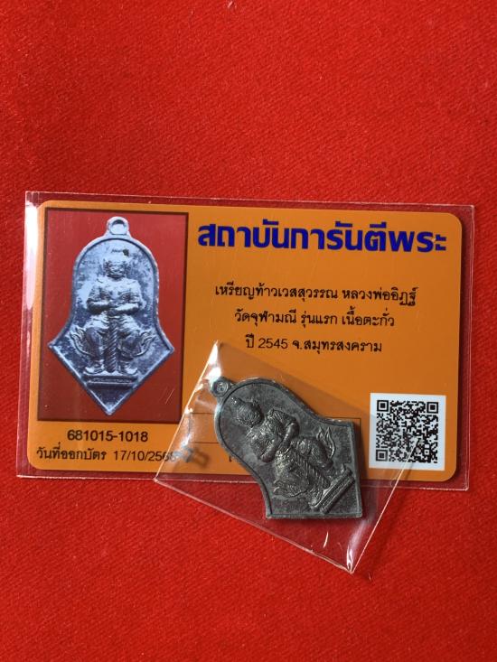 เหรียญท้าวเวสสุวรรณ หลวงพ่อ อิฐ รุ่นแรก ปี 45 เนื้อตะกั่ว เดิมครับมาพร้อมบัตรรับรองสบายใจได้ครับ