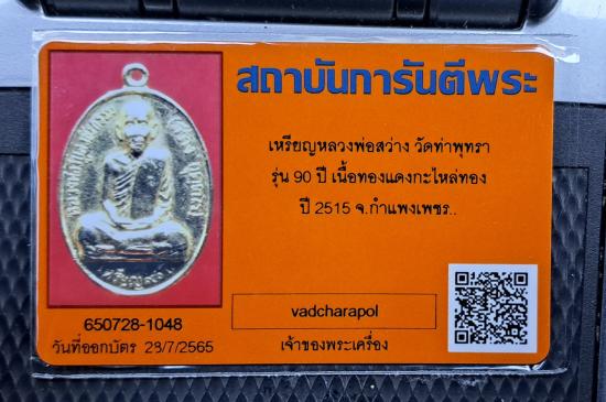 เหรียญ "90ปี" หลวงพ่อสว่าง วัดท่าพุทรา กะไหล่ทอง สวย พร้อมบัตร G