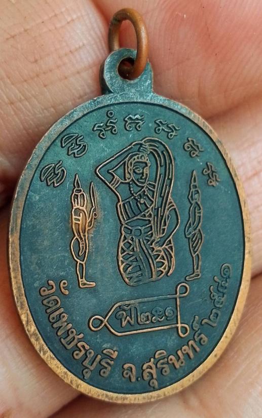 เหรียญรุ่นแรกหลวงปู่หงษ์ หลัง พระแม่ธรณีบีบมวยผม วัดเพชรบุรี จังหวัดสุรินทร์ ปี 41 ตอกโค๊ตหงษ์ |