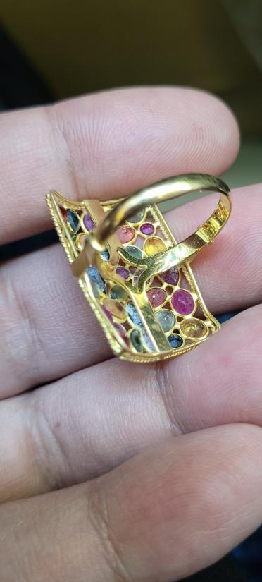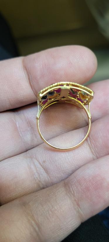 แหวน18k ไซส์ประมาณ55-56หนัก 4.73 กรัมพลอยแท้ไม่ทราบชนิดแถมให้ครับ