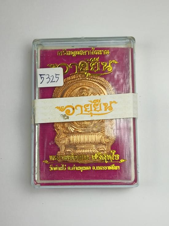 เหรียญนั่งพานอายุยืน หลวงพ่อคูณ วัดบ้านไร่ เนื้อทองแดง "หลังยันต์" เบอร์ 5325 พร้อมกล่องครับ