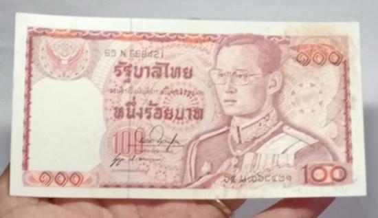 ธนบัตรฉบับละ100บาท ในหลวง ร.๙ หนึ่งร้อยหลังช้างแดง สวยๆครับ เริ่มหายากแล้ว