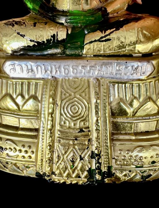 พระแก้วพิธี 25 พุทธศตวรรษ พุทธาภิเษกวัดประสาทบุญญวาส สามเสน กรุงเทพฯ สำนักพุทธธรรมประทีป เนื้อแก้วสีเขียวกระไหล่ทอง สภาพสวยสมบูรณ์ ขนาดหน้าตัก 5 นิ้ว |