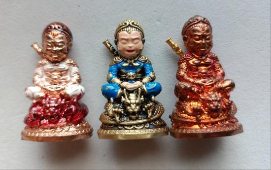 วัดใจเคาะเดียวแดงจ้า รูปหล่ออุดกริ่งฉีเทียนน้อย ซุนหงอคง วัดถ้ำเขาชะอางค์ 3องค์ คละเนื้อ เคาะเดียวแดงจ้า