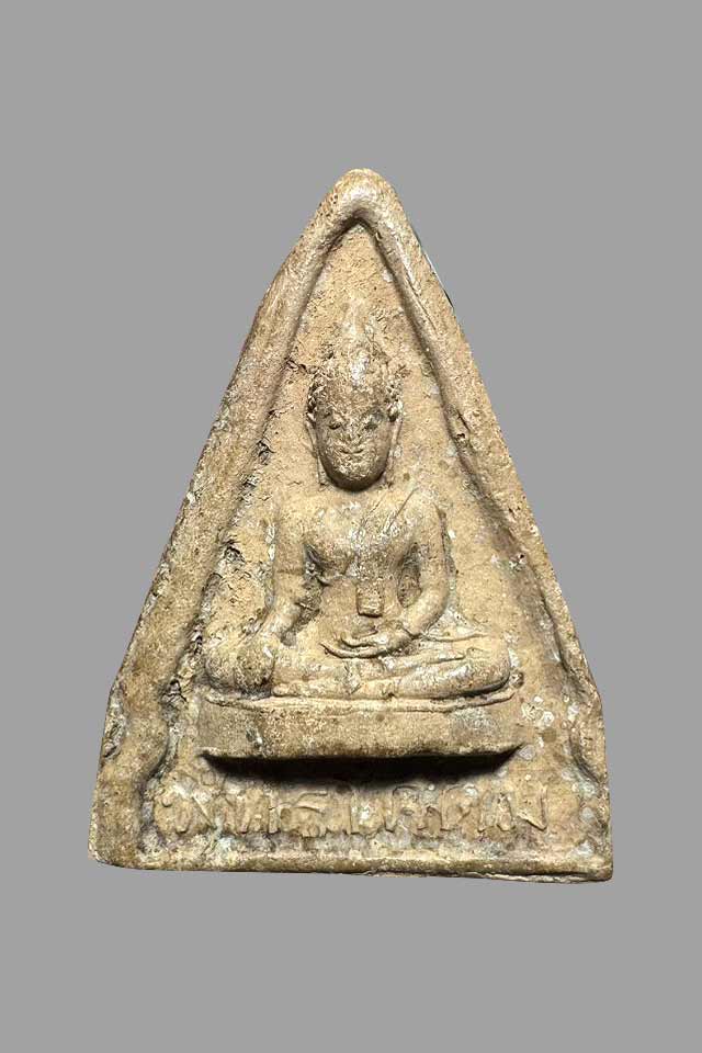 พระพุทธโคดม หลวงพ่อขอม วัดไผ่โรงวัว จ.สุพรรณบุรี ปี2505 พิมพ์สามเหลี่ยมหลังยันต์ เนื้อดิน |