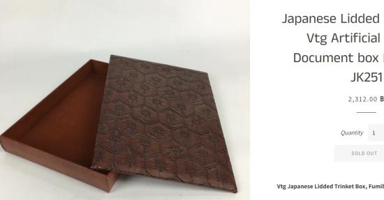 กล่องไม้หุ้มหนังแท้ตอกลายกระดองเต่าทรงกลม ขนาด 32*22 สูง 4.5 ซม.จาก Kanogiyaman-Vintage Japan Genuine Leather by Kanogiyaman หนังตอกลายสวยงาม