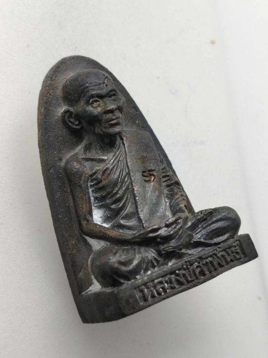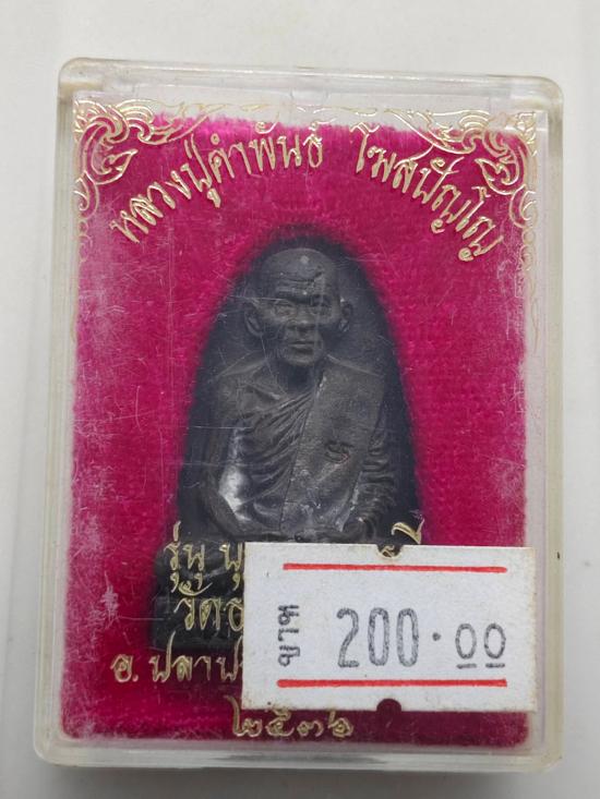 รูปหล่อเหมือนพิมพ์หลังเตารีด หลวงปู่คําพันธ์ รุ่นบุญญาบารมี ปี พ.ศ 2536 เนื้อนวะโลหะ เลข 473 กล่องเดิม สภาพสวยเดิม