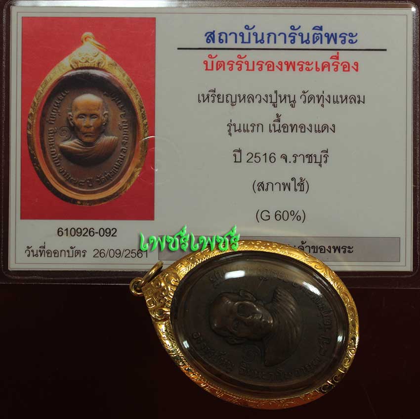 เหรียญ หลวงปู่หนู วัดทุ่งแหลม รุ่นแรก พิมพ์หูติ่ง นิยม เนื้อทองแดง ปี2516 จ.ราชบุรี เลี่ยมทอง60% พร้อมบัตรรับรองพระแท้จากการันตีพระสบายใจได้พระแท้แน่นอน ค่ะ