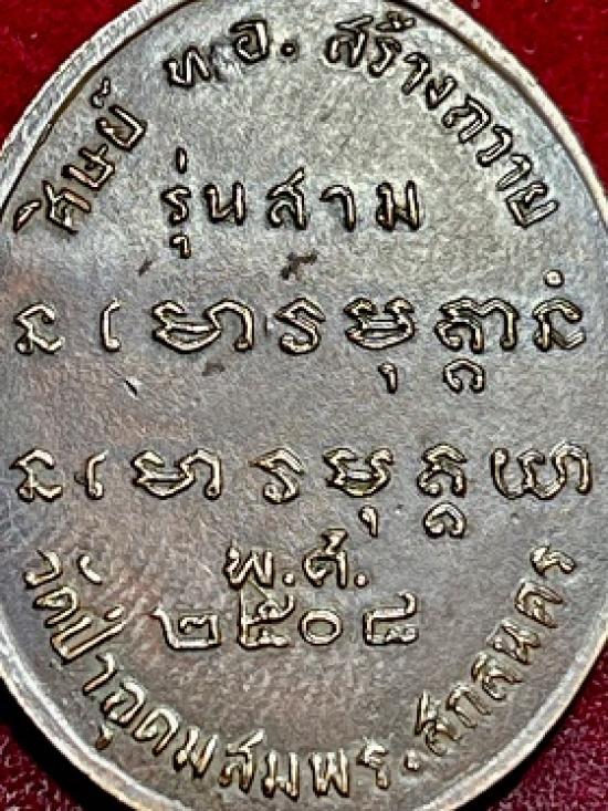 เหรียญหลวงปู่ฝั้น อาจาโร รุ่นสาม เนื้อทองแดง วัดป่าอุดมสมพร จ.สกลนคร พ.ศ. ๒๕๐๘