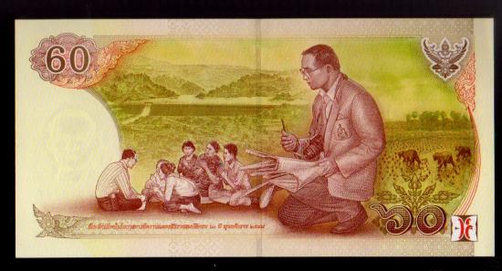 ธนบัตรที่ระลึก 60 บาท พระบาทสมเด็จพระเจ้าอยู่หัวรัชกาลที่ 9 ฉลองสิริราชสมบัติครบ 60 ปี ## ไม่ผ่านการใช้