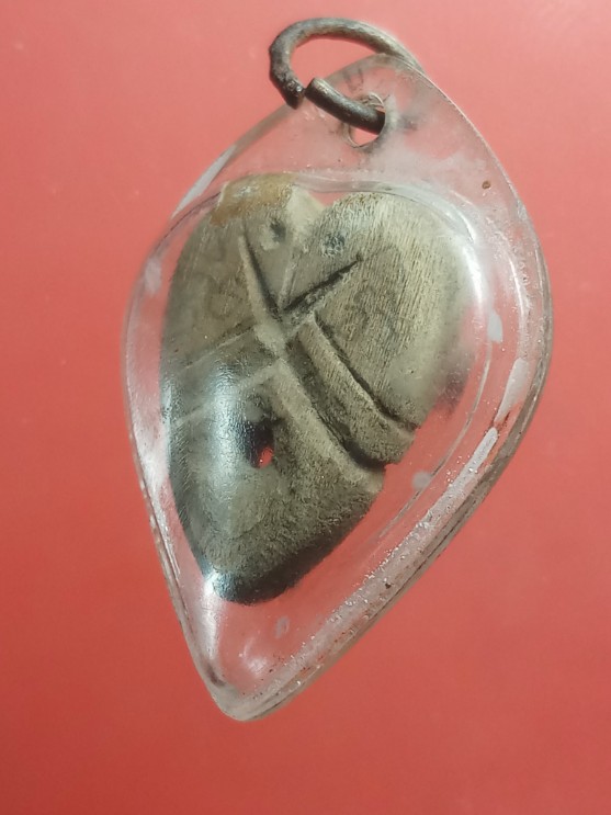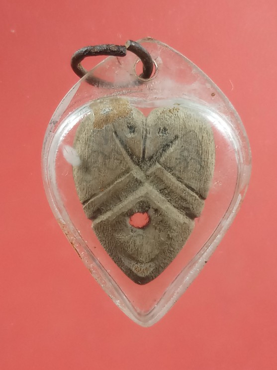 นกสาริกาคู่แกะไม้มะยมตายพลาย ล.ป.ทิม วัดละหารไร่ สร้างประมาณปี2514 (จารดินสอเลี่ยมเก่า)