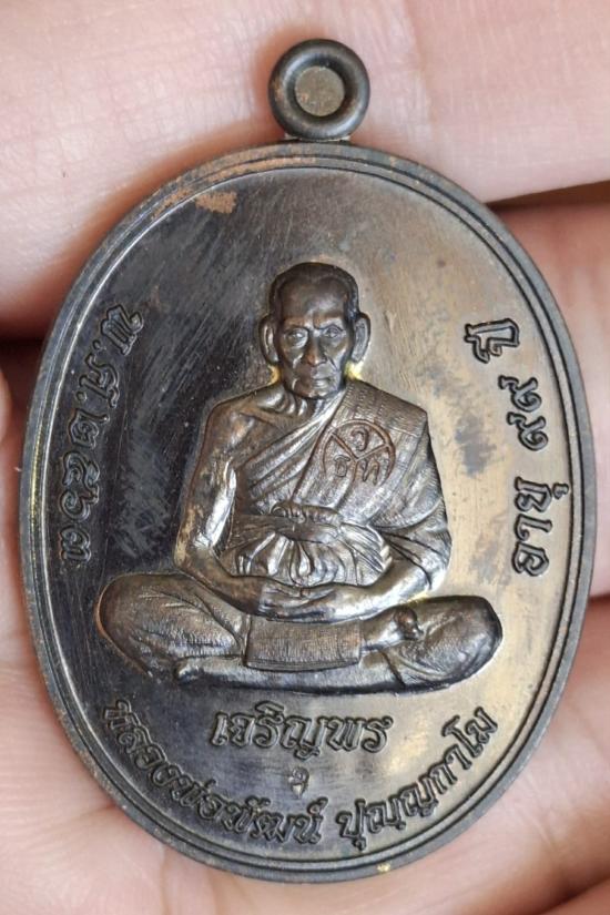 เหรียญเจริญพรล่าง พิมพ์เต็มองค์ หลวงพ่อพัฒน์ ปุญฺญกาโม เนื้อทองแดงรมดำ เลข ๒๘๓๓ ไม่มีกล่อง