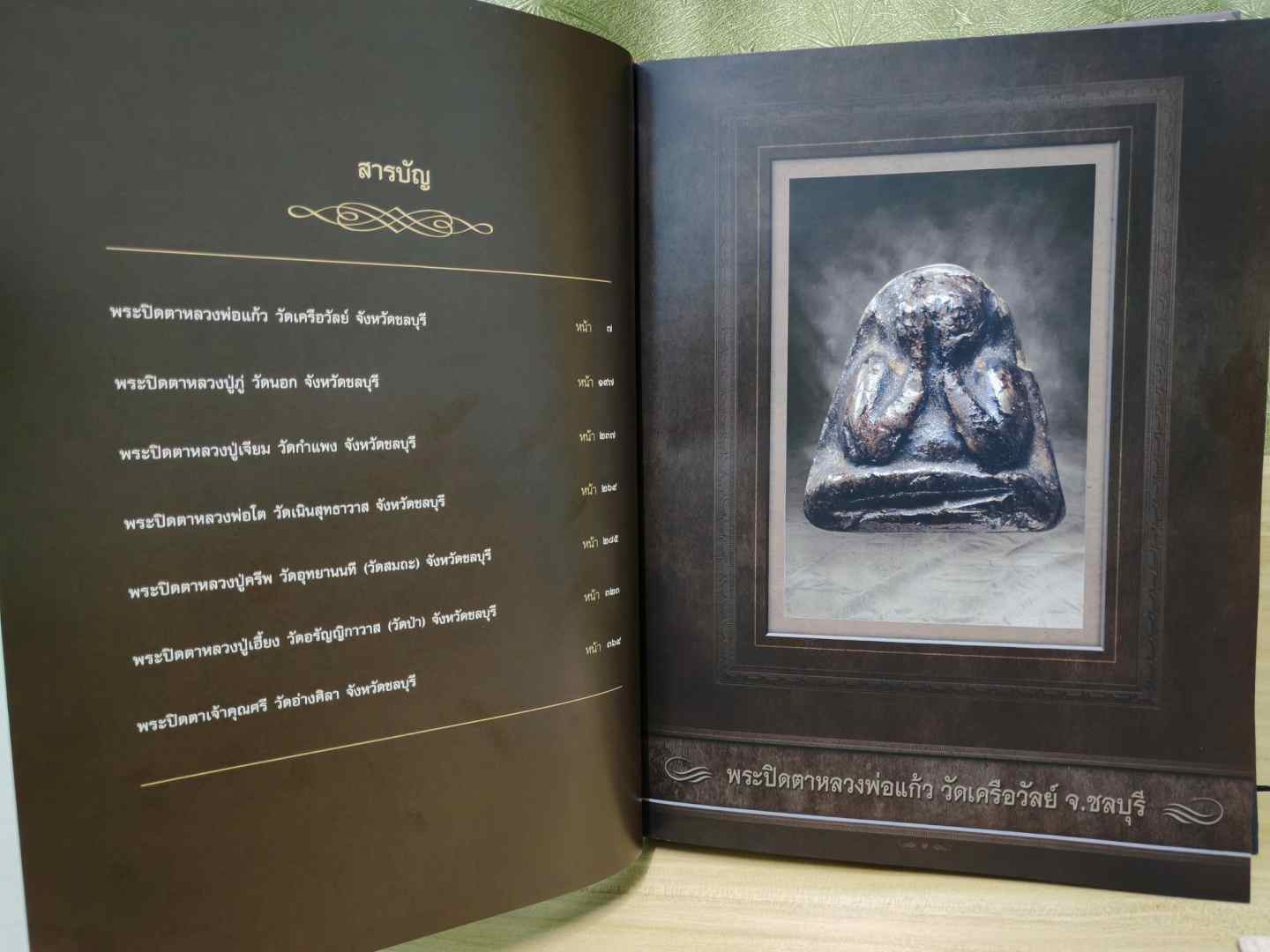 ...หนังสือที่รวบรวมประวัติความเป็นมา พร้อมทั้งภาพพระปิดตา ของเหล่ายอดคณาจารย์ สายจังหวัดชลบุรี อาทิ หลวงพ่อแก้ว วัดเครือวัลย์, หลวงปู่ภู่ วัดนอก, หลวงปู่เจียม วัดกำแพง, หลวงพ่อโต วัดเนินสุทธาวาส , หลวงปู่ครีพ วัดสมถะ, หลวงปู่เฮี้ยง วัดป่า, หลวงปู่ศรี วัดอ่างศิลา.. สภาพดี