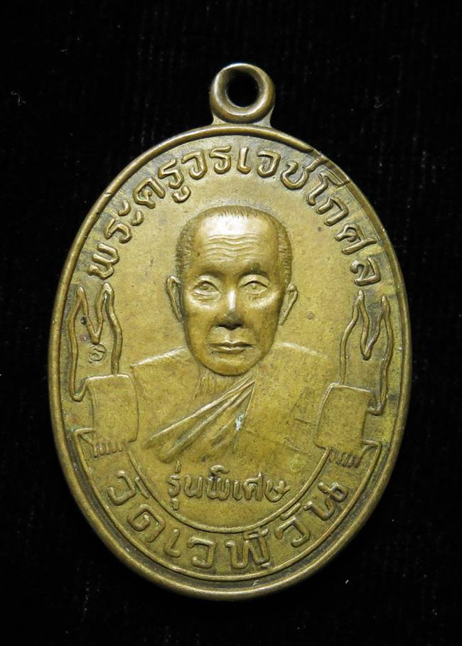 เหรียญรุ่นพิเศษ พระครูวรเวชโกศล วัดเวฬุวัน จ.ปทุมธานี ปี 2537 (คณะศิษย์สร้างถวาย) เนื้อทองเหลืองฝาบาตร